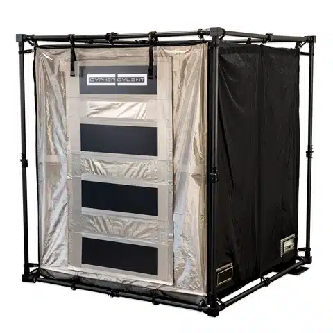 - Áreas seguras anti-espionaje (SCIFs móviles): Crear cuartos SCIF improvisados o móviles en sitios de operación usando carpas, bolsas blindadas y materiales de sellado RF.